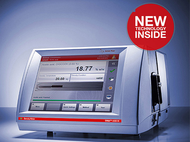 濃縮型 - DMA4500M C 擁有超過 140 個(gè)內(nèi)置換算表,涉及鹽、酸、堿、酒精、糖等等??呻S時(shí)添加單獨(dú)表格。實(shí)驗(yàn)室人員只需短期培訓(xùn)即可操作濃度計(jì)。僅需 2 毫升的樣品量且無需更多耗材。測量僅耗時(shí) 30 秒。