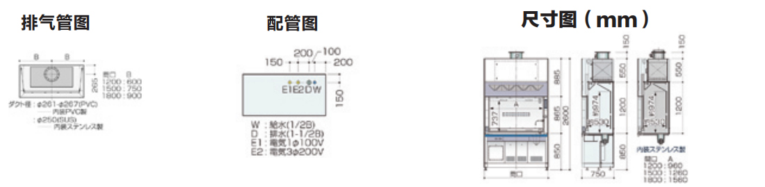 120/150/180:不含石棉的特殊板材 120U/150U/180U:不銹鋼SUS304 |